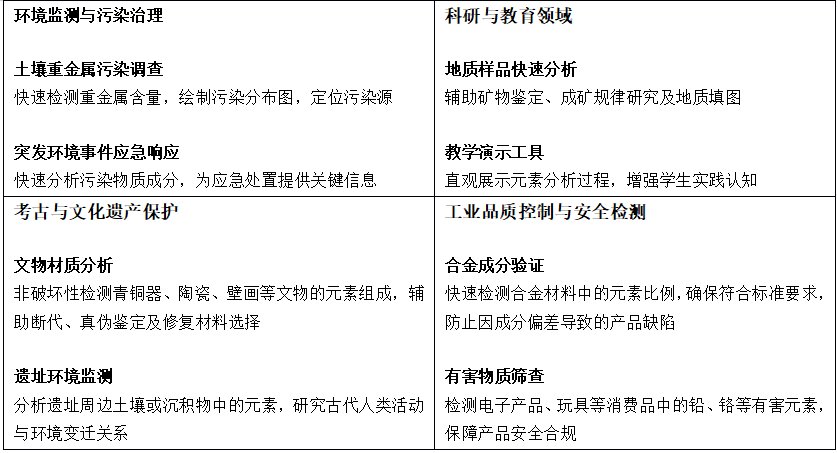 在应用方面,Auto SC500通过对元素数量系统性变化规律的深入分析,能够迅速完成矿物鉴定、地质填图以及矿化中心圈定等工作。这些功能可直接为矿床勘查工作提供有力指导,助力矿石分类与筛选等关键环节。其具体应用场景十分广泛,涵盖野外地质现场矿化区域的快速鉴定与地质填图,可帮助勘探人员快速掌握区域地质情况;在轻污染工业用地调查中,能精准定位污染区域;在岩心编录工作中,可高效记录岩心元素信息;还能准确确定污染边界并进行地面验证,选矿过程中原矿、精矿和尾矿等进行精确快速分析,为矿石品位的测定、矿物贸易、加工以及再利用提供价值判定依据。